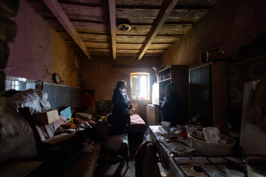 Pap Ferencné Sárát és lányát, Andreát látogatjuk meg először. Mindig öröm, amikor jön Józsi – mondják, és látszik is az örömük, viccelődnek, nevetgélnek. Nincs mobiltelefonjuk, de a tanyagondnok mindig előkeríti őket, ha kell, a szomszédból. Hozza az adományokat, tartós élelmiszert – szükségük van rá, mert egészségügyi okokból az egyikük sem tud dolgozni –, segít fát hasogatni, elbeszélget velük. Sára 70 felé jár, fürge asszony, eljár gyalog a boltba, fél óra séta, de ha beletapos a gázba – mutat a cipőire – akkor még kevesebb. Van, amikor én nem érem utol, 46 évesen, viccelődik vele a lánya. Itt született, négy testvérével együtt itt nevelkedett, nem szeretne elmenni: friss a levegő, sok a vad, tavasszal beköszönnek a kertbe a dámok. Mindig öröm, ha jön – de még jobb lenne, ha gyakrabban jönne – mondják mosolyogva a tanyagondnoknak, majd „megfenyegetik”: baj lesz, ha Sándor, József, Benedek nem hozza a meleget, a Józsefeken verik le.