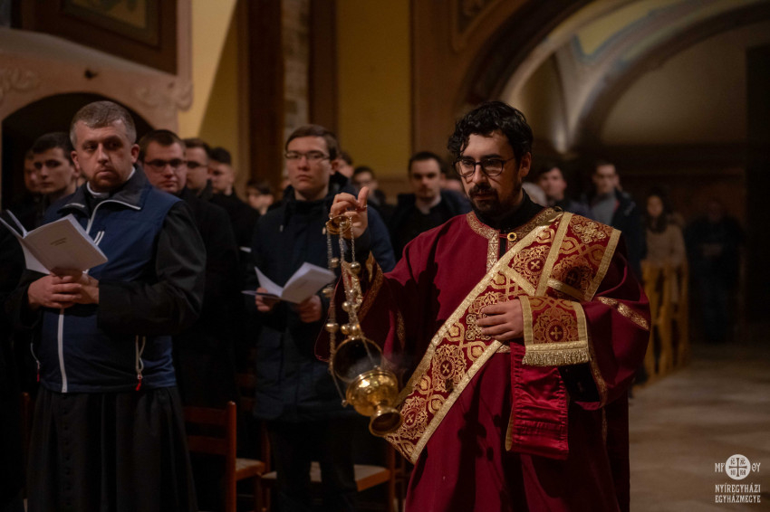 Az esti órákban kezdődött az előre megszentelt áldozatok liturgiája, melyet Dobos András, a nyíregyházi szeminárium rektora végzett. Sokan nem ismerték a vendég-papnövendékek közül az előszenteltek liturgiáját, így előzetesen ismertetőt kaptak róla, valamint a szertartás előtt Dobos András is elmagyarázta röviden ennek a különleges nagyböjti szertartásnak a jelentőségét, liturgikus cselekedeteit.