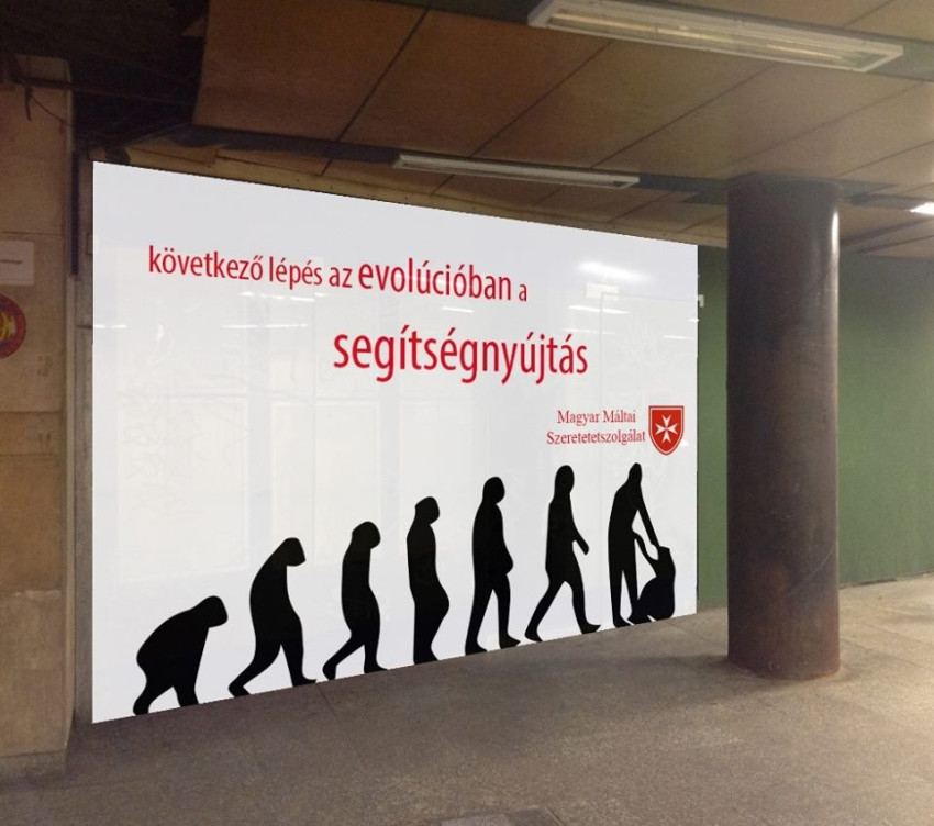 „Következő lépés az evolócióban a segítségnyújtás” – ez a felirat áll a nyertes plakáton, amelyet Porcz Patrik soproni egyetemi hallgató készített a Dózsa György úti aluljáró reklámfelületeinek hasznosítására kiírt pályázatra. A győztes díját Budapesten adta át Kovács István, a MAHIR ügyvezetője és Vecsei Miklós, a szeretetszolgálat alelnöke. A „Segíts egy rászorulónak” című pályamű a tervek szerint hamarosan látható lesz a nagy forgalmú aluljáróban.