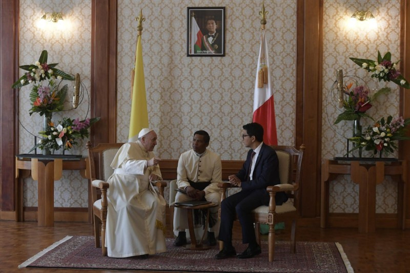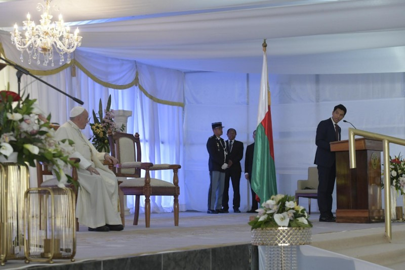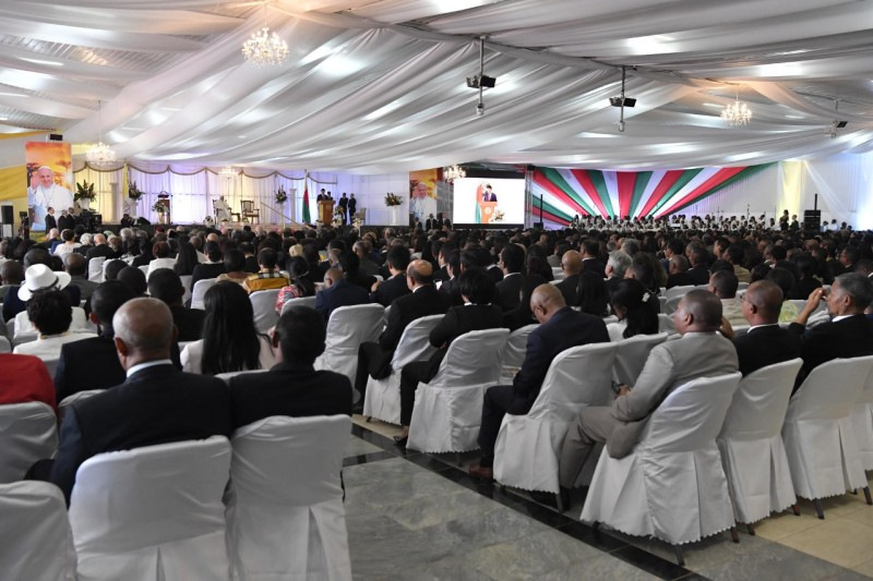 Beszéde végén Ferenc pápa arra emlékeztette Madagaszkár politikai vezetőit, hogy a Katolikus Egyház kész állandó párbeszédet folytatni más keresztény felekezetekkel, a többi vallással és a civil szervezetekkel is a fihavanana, azaz a testvéri szolidaritás madagaszkári hagyománya jegyében.