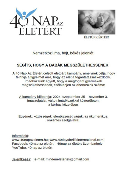 Szeretettel hívnak mindenkit, hogy kapcsolódjon be az imádságba!