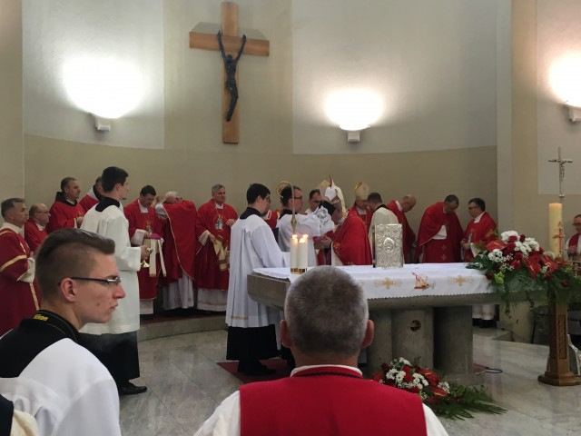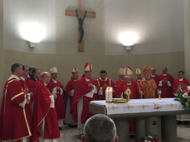 A körmenet és a szentmise előtt Vlado Košić sziszeki püspök és az egyházmegye helynöke fogadta a szombathelyi delegációt. A papság és a hívek székesegyháztól a városon keresztül énekelve, rózsafűzért és litániát imádkozva zászlókkal és a mártír püspök képével vonultak a 2002-ben épített Szent Kvirin-templomhoz. Hat püspök és az egyházmegye papsága mutatta be az ünnepi szentmisét, amelyen külön köszöntötték a szombathelyi küldöttséget. A szertartás végén Szent Kvirin ereklyéje előtt fejezték ki tiszteletüket a jelenlévők.