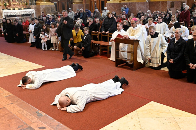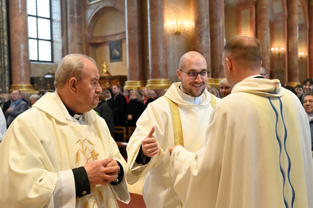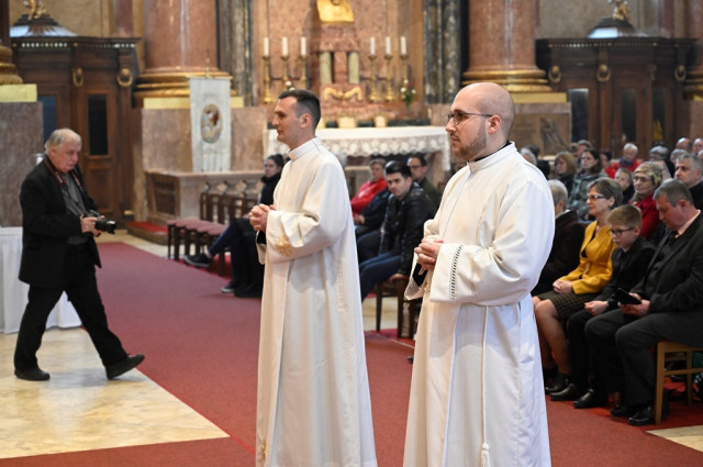 A főpásztor a szentbeszédben személyes gondolatokat is megosztott a szentelendőkkel, majd ezután kezdődött a diakónusszentelés szertartása, melyen felöltötték az új szerpapok a bal vállon átvetett stólát és a dalmatikát.