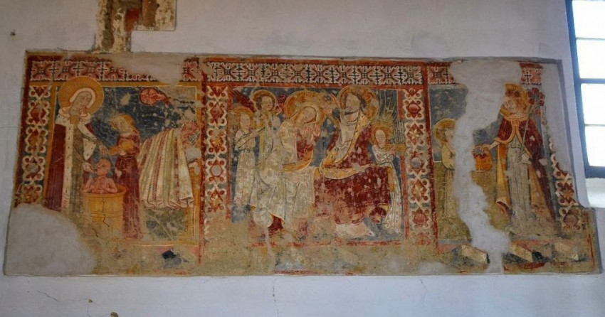 Az akkor feltárt falképek a 14. század utolsó negyedében készültek, és szentek sorát ábrázolják. Köztük az első a betegeket ápoló Árpád-házi Szent Erzsébet.