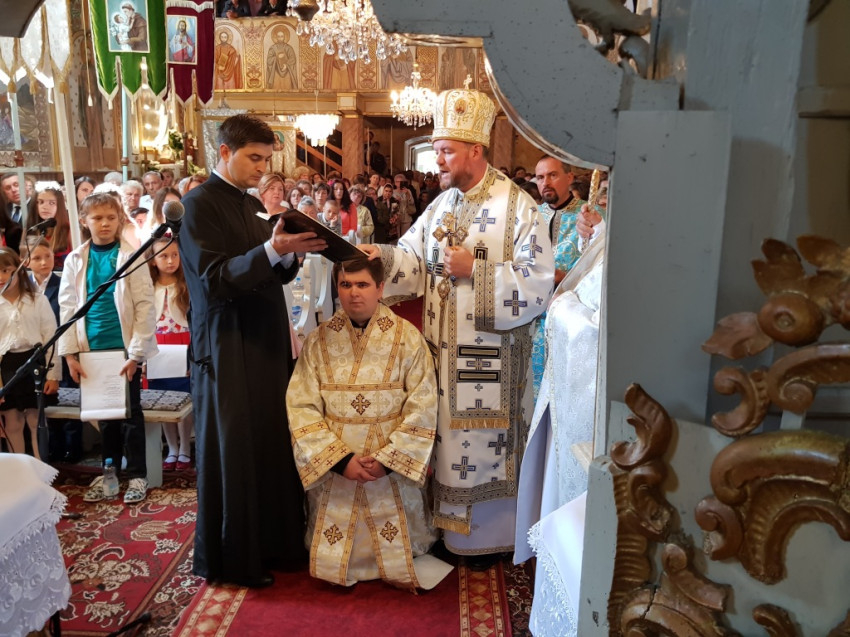 Az ünnepi Szent Liturgiára való bevonulás után a nyitott királyi ajtó előtt a szentelendő – háromszori teljes meghajlást követően – a püspök elé járult, és térdre borult. A főpásztor jobbját fejére helyezte, és elimádkozta az áldó imát. Az új szubdiakónus vizet öntött a főpásztor kezeire, és kéztörlésre kendőt nyújtott át neki.