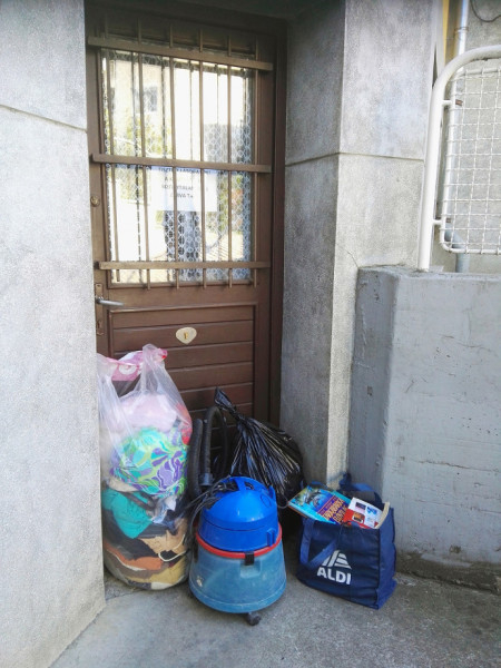 A karitászboltunk is zárva tart, de ez nem vált akadályává a ruhák leadásának: mindenki leteszi a zacskókat, zsákokat az ajtó elé, az egyik kollégánk pedig, aki mindennap megy gondozni a kertet, beviszi őket. Hely szerencsére van még, mivel a templom eleve úgy épült annak idején, hogy a karitásznak ne legyenek raktározási nehézségei.