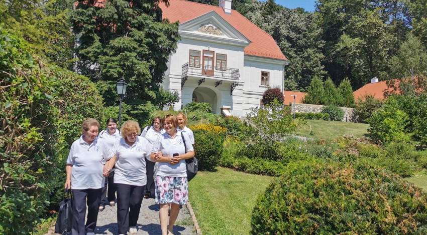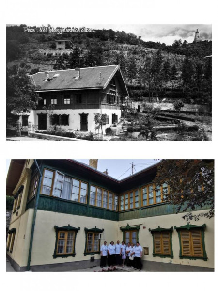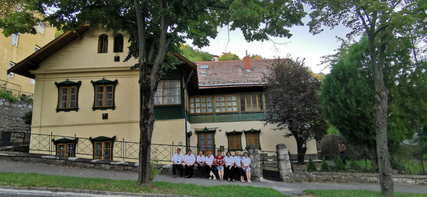 Végül – a pécsi bazilika mellett ez volt a másik fő célja a zarándoklatnak – az egykor a nővérek által működtetett lelkigyakorlatos házat kerestük fel, ami magántulajdonba került, azonban gyönyörűen karban tartják, eredeti állapotában látható. A tulajdonosok nyitottságának eredménye volt a közös fotózás és a címek cseréje is.