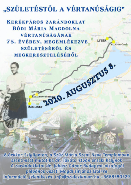 10.30 – Bódi Mária Magdolna emléktáblájának megkoszorúzása Köveskálon, majd indulás Balatonfűzfőre; pihenő Balatonfüreden, végül ima Magdi sírjánál Litéren.