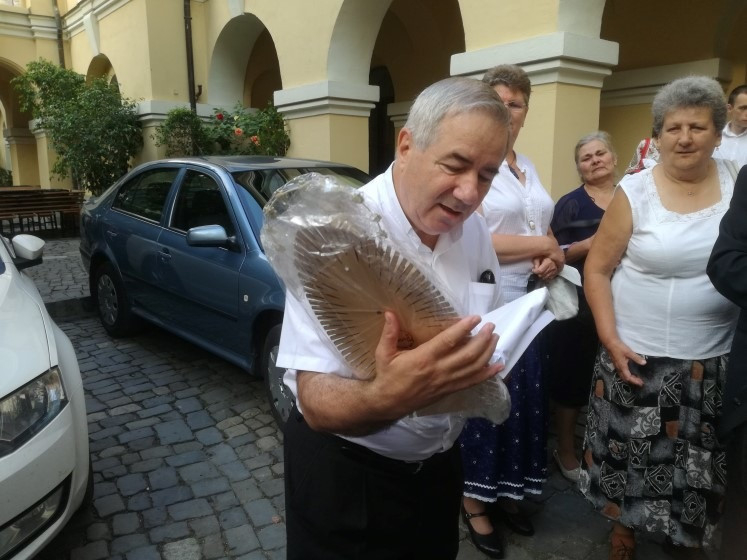 A püspöki rezidencia megnézése, a felszentelendő püspökkel való találkozás külön esemény volt, meghitt környezetben, amikor átadhattuk ajándékainkat, a csíksomlyói kegyszobor kis mását és aláírásunkkal ellátott Zarándokúton című imakönyvünket. Ennek borítóján szintén a Szűzanya kegyszobrának képe van.
