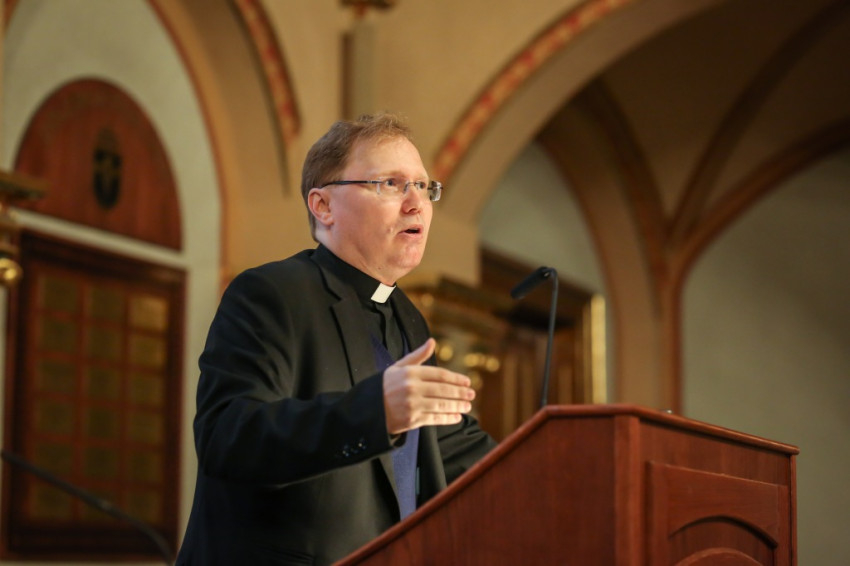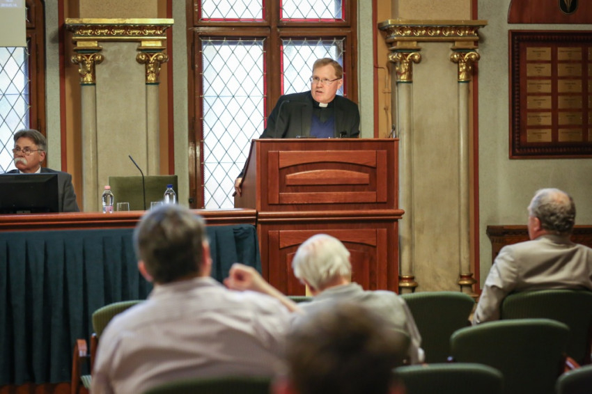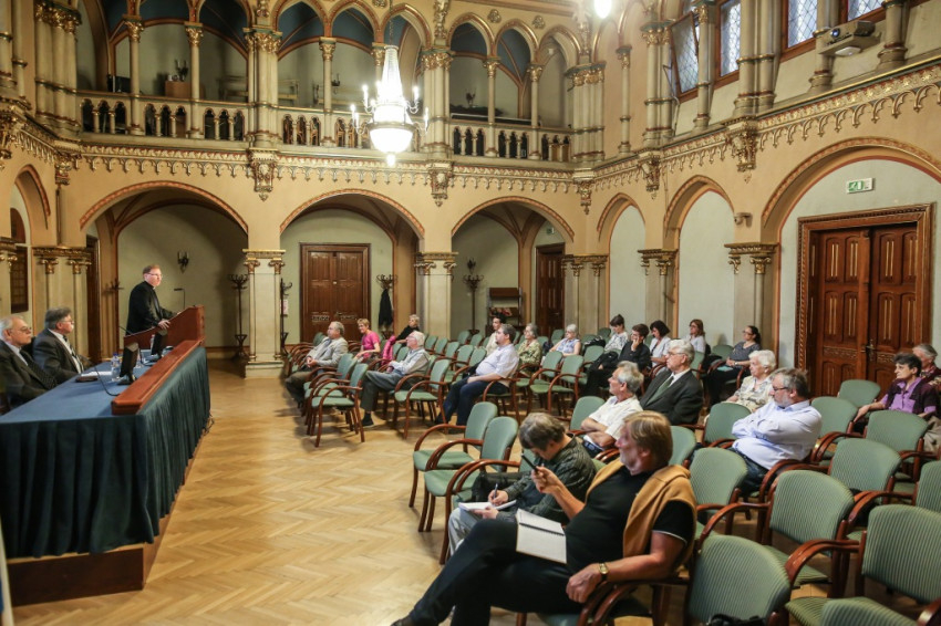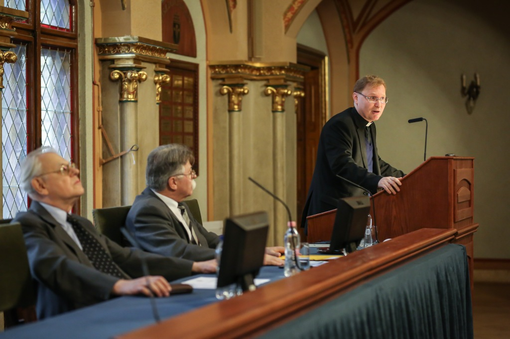 Előadásában a tudós professzor kifejtette, a kánonjogi forrásoknak, vagyis az Egyház által alkotott normarendszereknek, különböző szintű szabályoknak folyamatosan kikristályosodott rendszerét ismerjük, egészen az úgynevezett nagy missziós parancs óta, amikor Jézus Krisztus elküldi az apostolokat, hogy hirdessék az evangéliumot, tegyenek tanítványokká minden népet, megkeresztelvén őket az Atya, a Fiú és a Szentlélek nevében.