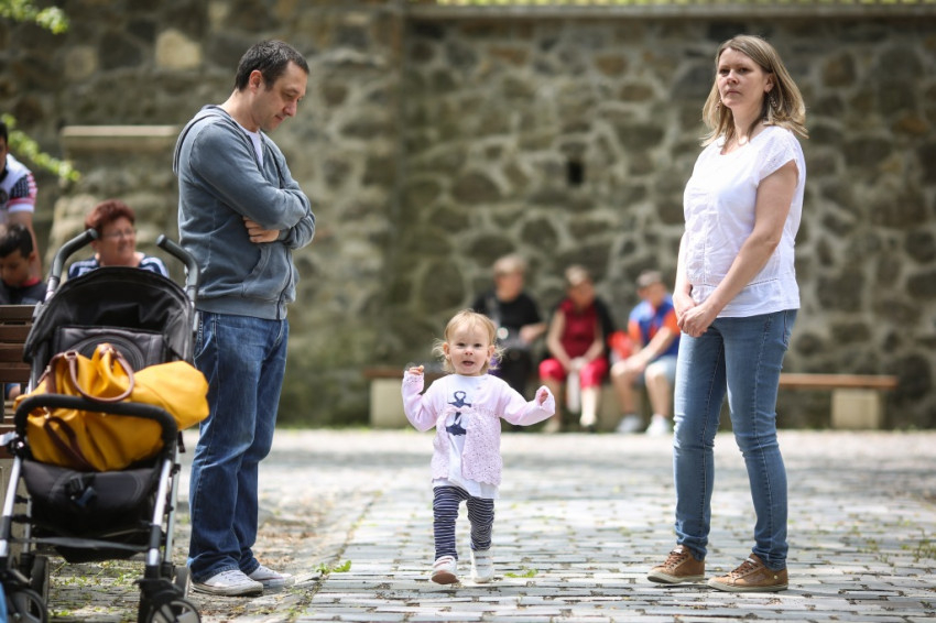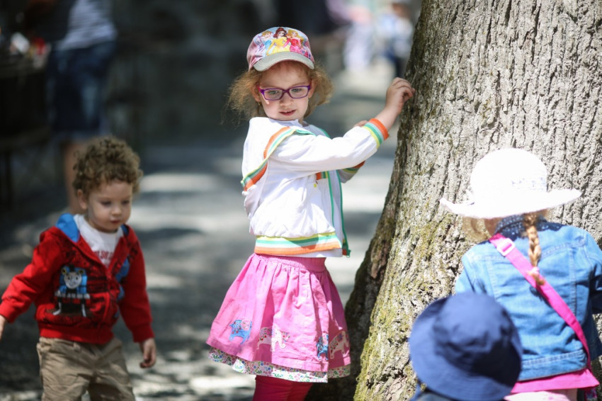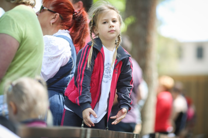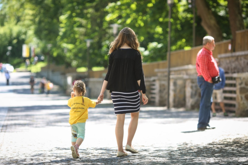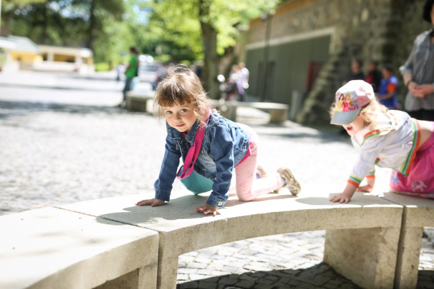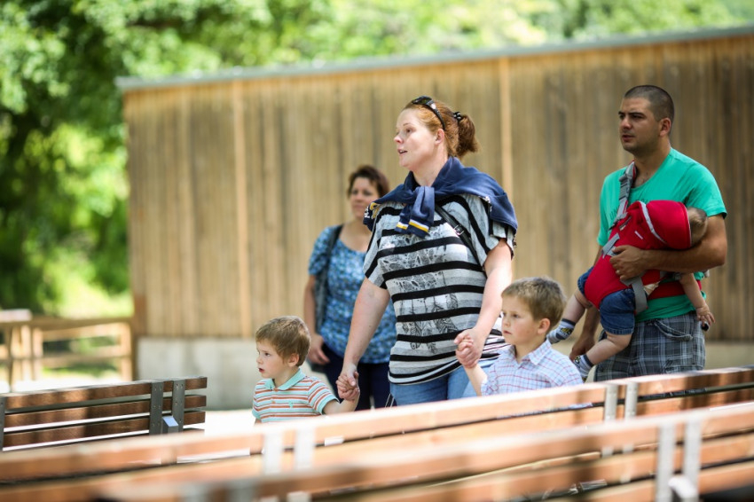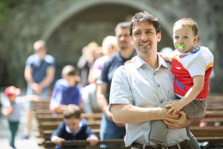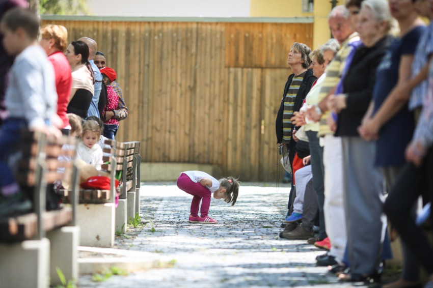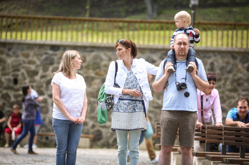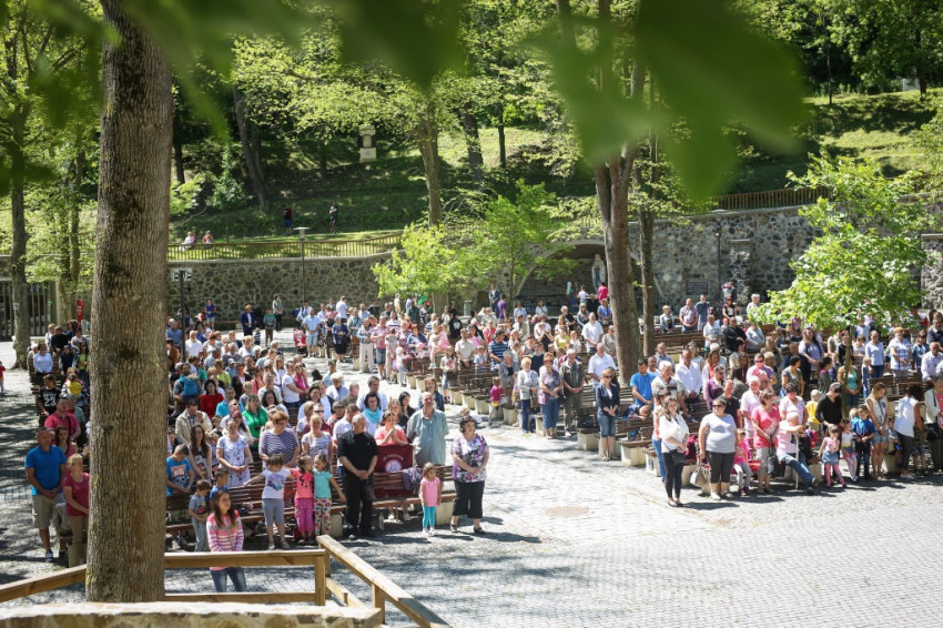 Ha nem is mi „ébresztjük a hajnalt”, amikor kilenc előtt Mátraverebély-Szentkútra érkezünk, még minden nagyon csendes, csaknem néptelen. A Váci Egyházmegye ovisait várják ma ide afféle évzáróra. Az óvodák szervezésében a kegyhely felé buszozó gyerekek azonban ekkor még javában úton vannak. Az a néhány, akiket a sétányokon már most is látunk, a családjával kelt útra, és nagyon korán kipattanhatott a szeme ma. Most kirobbanó energiával szaladgálnak, faleveleket szednek, kavicsot gyűjtenek. Napos, bár még hűvös az idő, jólesik a séta. „Gyere, megnézzük az erdőt!”, fogja meg kislánya kezét egy anyuka.