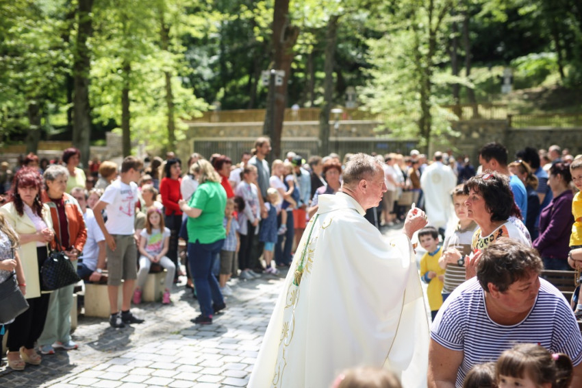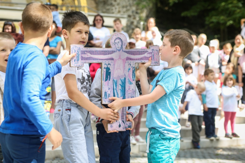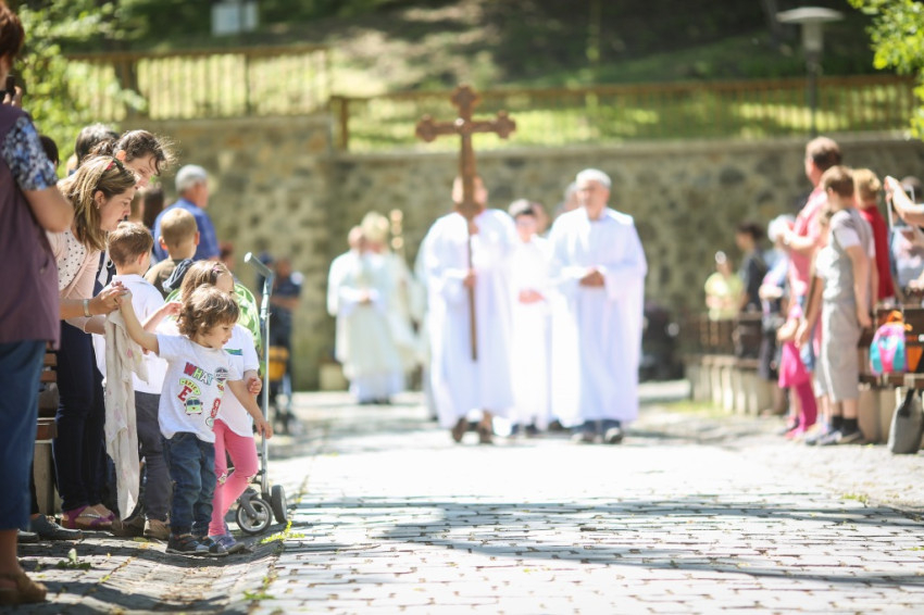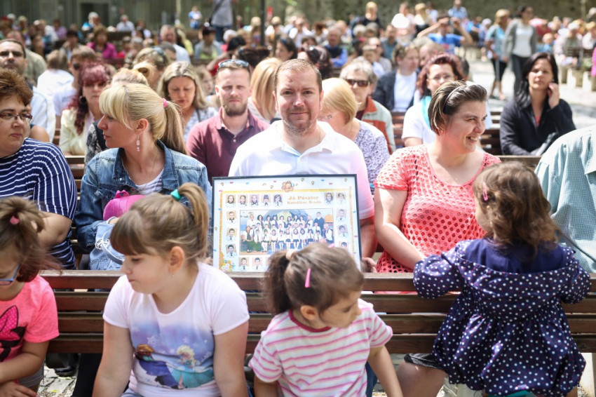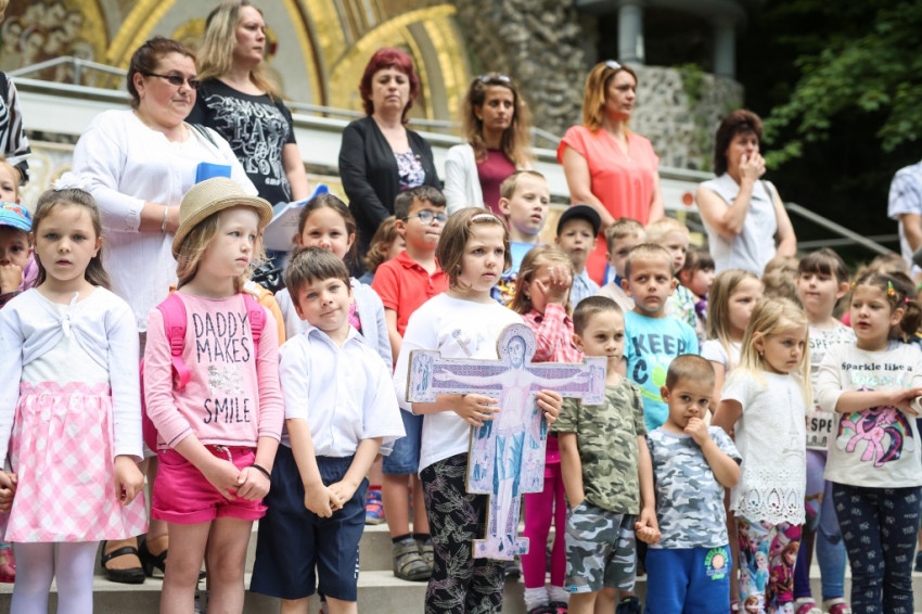 Az oltárnál Kálmán Peregrin, a kegyhely igazgatója elmond egy történetet. Olyan szülőkről szól, akiket gyermekeik, az ő elsőáldozásuk vezetett vissza a templomba, tett ismét vallásgyakorlóvá. Ezen elgondolkodunk, és máris tele vagyunk a katolikus óvodák szerepére, ismérveire vonatkozó kérdésekkel.