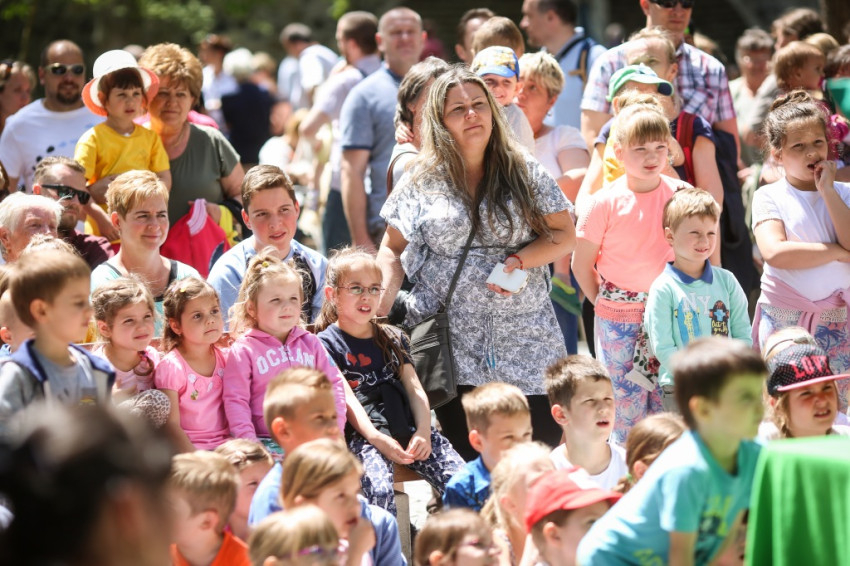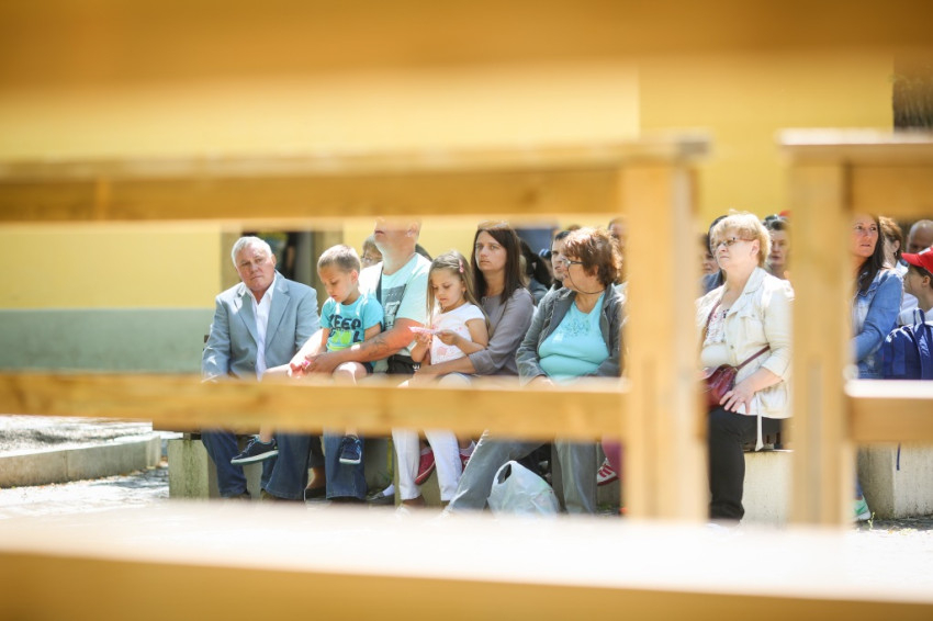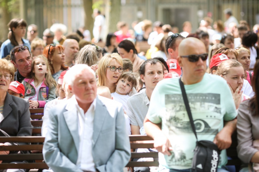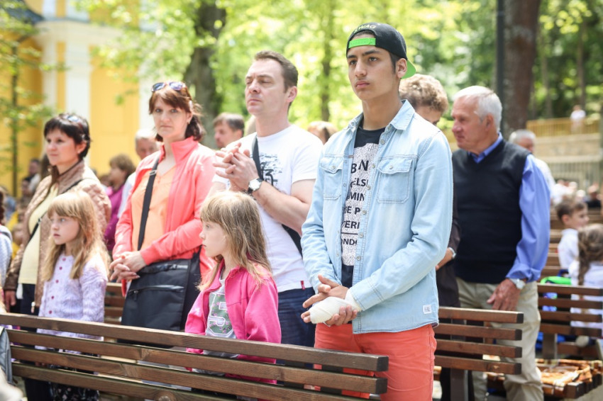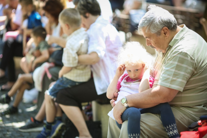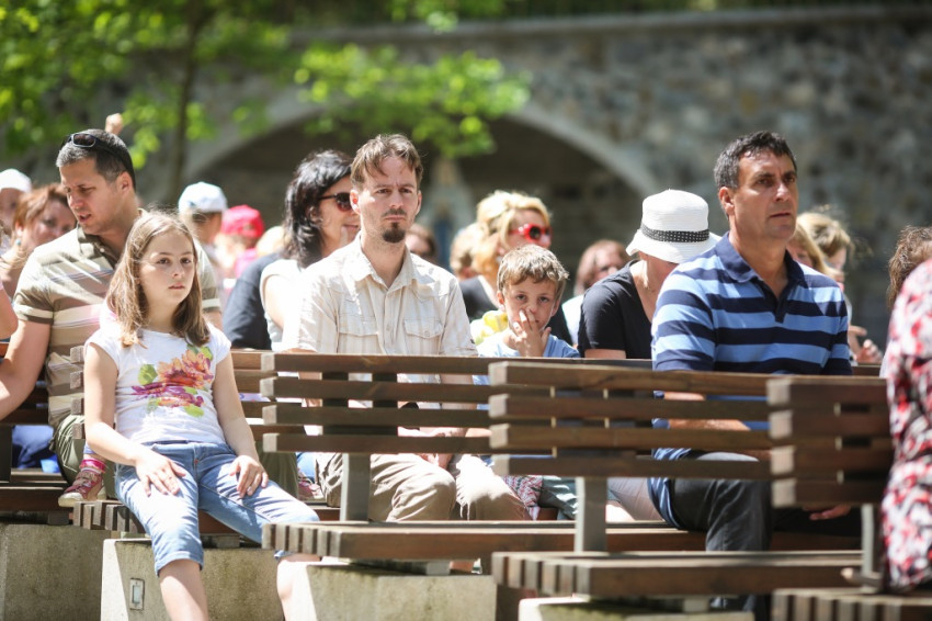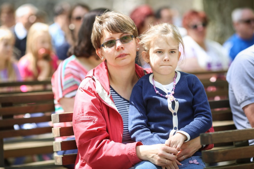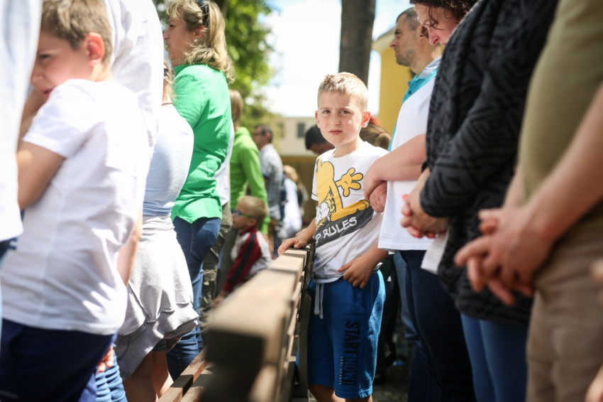 Az összkép másfél órával későbbre teljesen megváltozik. A szabadtéri oltár előtt ekkor már sok százan ülnek, beszélgetnek, járkálnak, várnak a tizenegyes püspöki misére. Óvodai csoportok egyenpólóban, -sapkában, óvó nénik, szülők és mindenfelé rengeteg gyerek, akik remekül feltalálják magukat, bár ez a ruhájuknak nem mindig tesz jót.