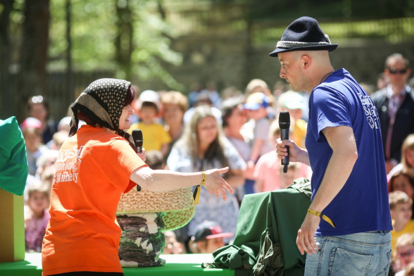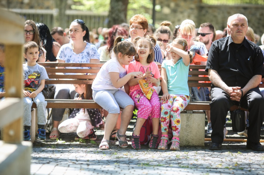 Az előadás hálás közönsége körülveszi a bábosokat, egészen közel mennek az asztalukhoz, megfogják, simogatják a bumfordi medvét, a nyuszit, de még az ordas farkastól sem szeppennek meg. A legkisebbek annyira beleélik magukat a mesébe, hogy a két előadónak néha már hátrébb kell húznia, fel kell emelnie előlük a bábokat, különben talán magukhoz ölelnék és hazavinnék őket. Ez a mese számukra valóság, és ezek a percek az ovis évzáró nap legszebb pillanatai. Amint az ő nyelvükön, vagyis a mese nyelvén szólnak hozzájuk, elvarázsolódnak. Rendhagyó zarándokok.