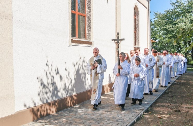 A templomudvaron álló kőkereszt és a kerítés megáldásával vette kezdetét a mikolai római katolikus templom búcsúja. A szentmise elején Schönberger Jenő püspök kifejezte háláját a híveknek, hogy szívükön viselik templomuk sorsát.