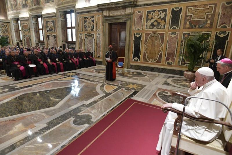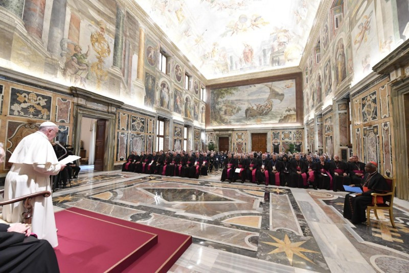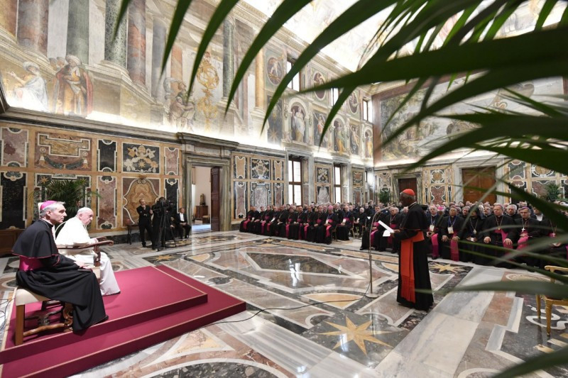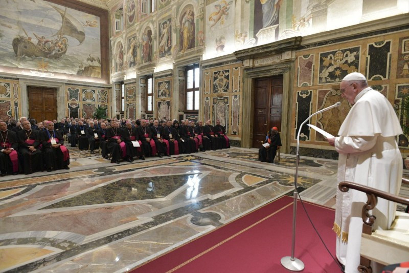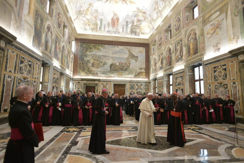 A pápa október 31-én fogadta a képzés 130 résztvevőjét, akik 70 különböző országból érkeztek. A tanfolyamot katonai szakértők és az ENSZ illetékes képviselői tartották. Idén volt a genfi egyezmény aláírásának hetvenedik évfordulója, ami megfelelő alkalom annak ismételt megfontolására