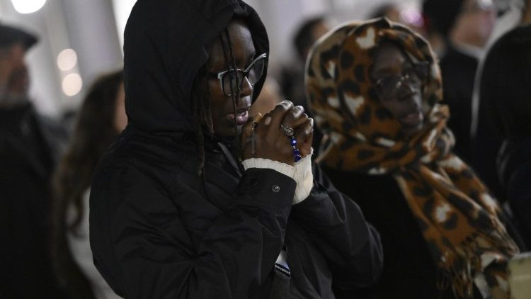 Este kilenckor először énekek csendültek fel, hogy bevezessenek a pápáért való imádságba, a rózsafüzér fájdalmas titkairól való elmélkedésbe. A vatikánvárosi vikariátus immár a második egymást követő estén szervezte meg az imádságot a Szent Péter-bazilika előtti téren, hogy Ferenc pápa gyógyulásáért fohászkodjanak, akit február 14-e óta a római Gemelli-klinikán kezelnek.