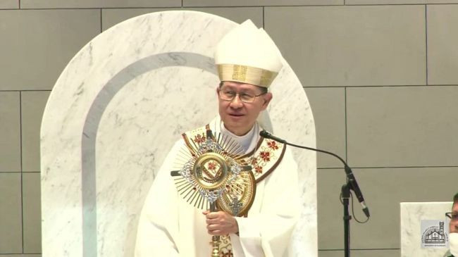 A templom építése hét évig tartott és most véget ért. „A keresztény közösségnek azonban, amelyet Egyháznak hívunk, az építése nem ér véget soha… Az élő kövekből álló egyházi közösség csak akkor marad fenn, ha megőrzi és folyamatosan megújítja Krisztus kegyelmi munkáját, és az élő kövek soha nem szakadnak el tőle, aki szegletkő, amelyre felépül a lelki házuk, és így megmenekülnek a veszélytől, hogy csupán kemény és hideg kövek maradjanak” – mondta Tagle bíboros. Ahhoz, hogy megmaradjanak Krisztusban, három utat javasolt: Isten szavának hallgatását, az Eucharisztiában és a többi szentségben való részesedést, és a szeretetszolgálatot azok felé, akikben jelen van Krisztus: akik éheznek, szomjaznak, idegenek, otthontalanok, betegek, fogságban vannak.