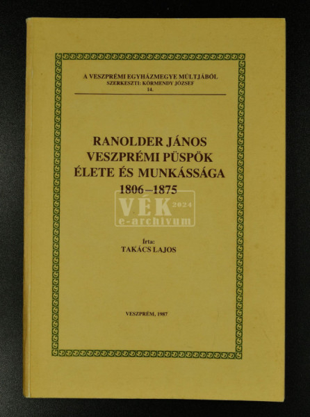 A könyvben bemutatott Ranolder János a legnagyobb formátumú veszprémi püspökök közé tartozott, munkássága komoly hatást gyakorolt egyházmegyéjének lakosságára és életére. Életrajzát Takács Lajos tabi plébános írta meg, a mű nyomtatott formában 1987-ben jelent meg a Veszprémi Egyházmegye Múltjából sorozat 14. köteteként.