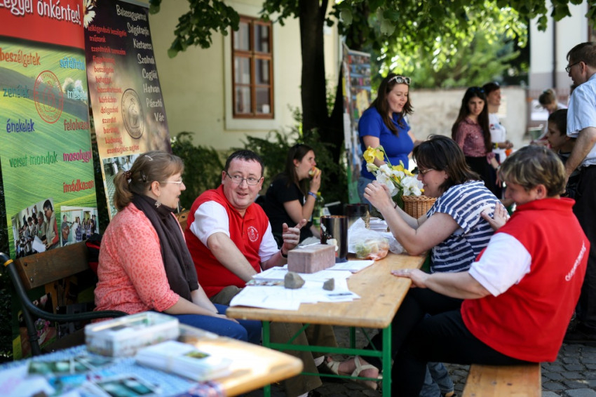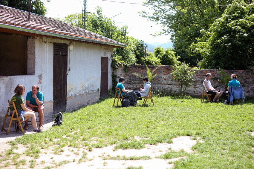 A ház udvarán személyes beszélgetésre, meghallgatásra várták a fiatalokat az Oázis Lelkigondozó és Mentálhigiénés Szolgálat munkatársai.