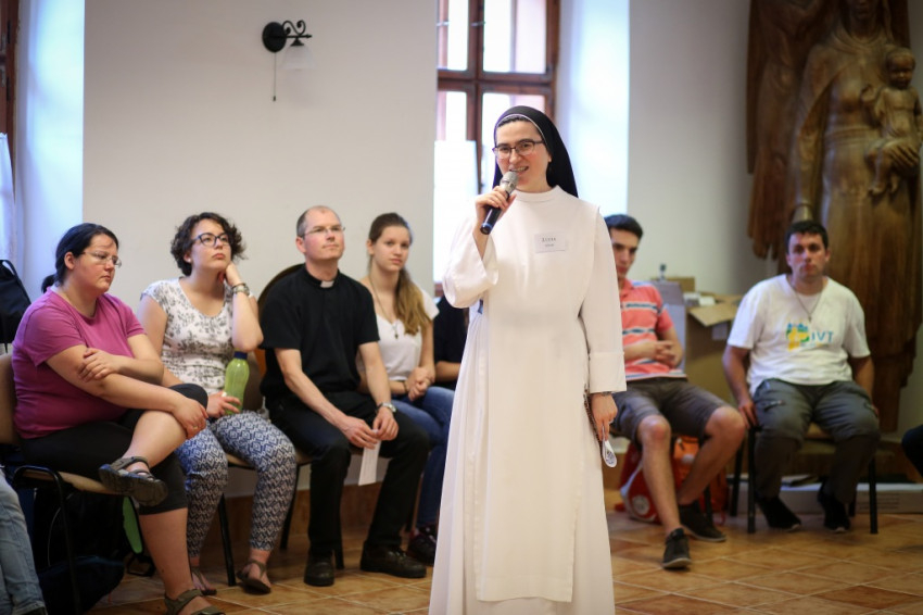 Hedvig és Mirjam nővér buzdította a fiatalokat az intellektuális igényességre, több kiadványt, szerzőt ajánlottak a jelenlévők figyelmébe, köztük XVI. Benedek, Aquinói Szent Tamás műveit, illetve Székely János püspök A hit kapuja című könyvét.