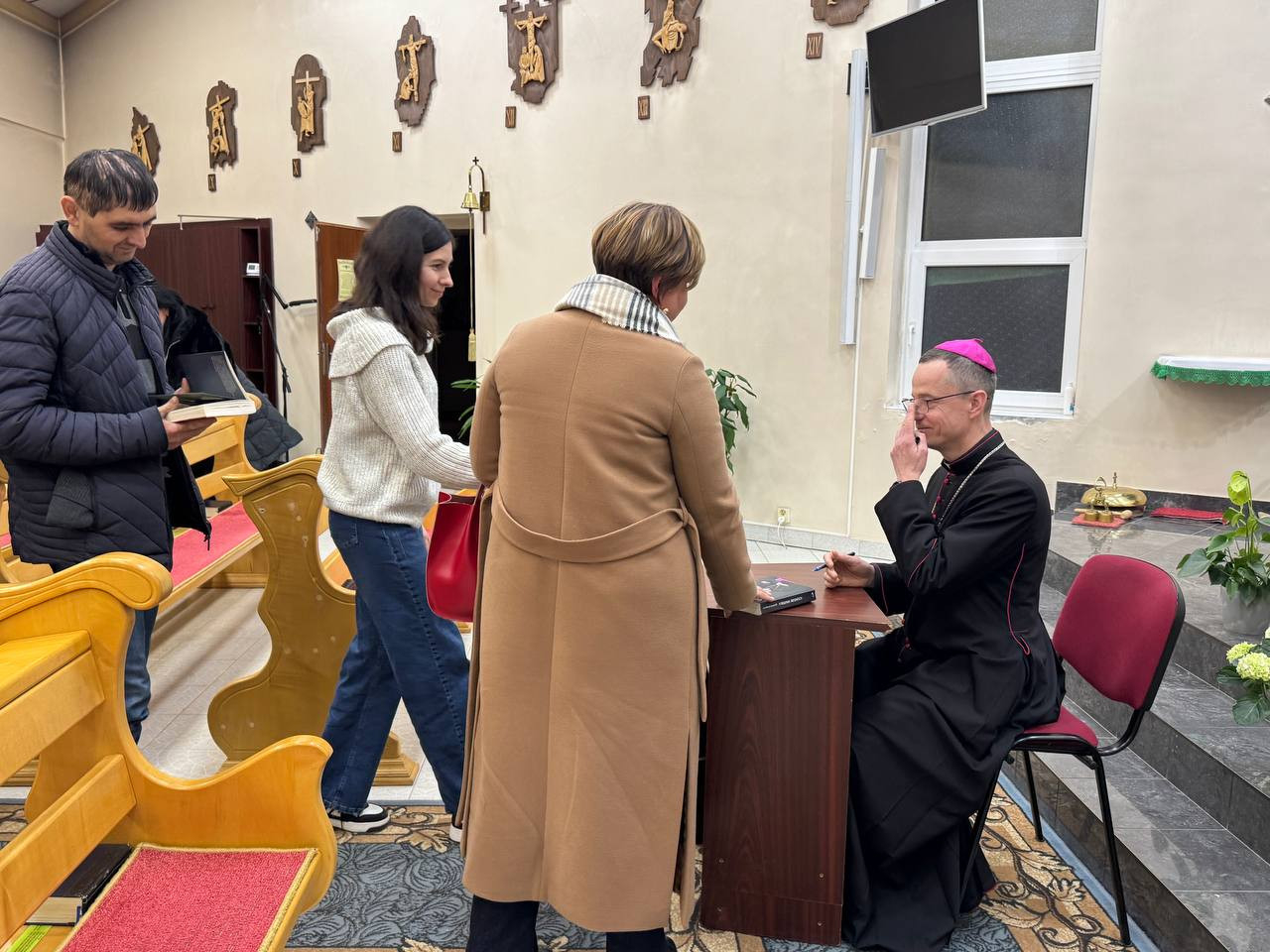 Sokan jöttek el az esti találkozóra, és nemcsak a Szentháromság-plébánia hívei voltak jelen, hanem Ungvár különböző egyházközségeiből is érkeztek vendégek, hogy meghallgassák a püspök beszédét és tapasztalatait.