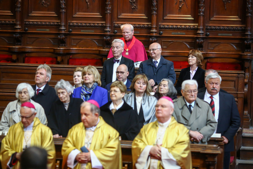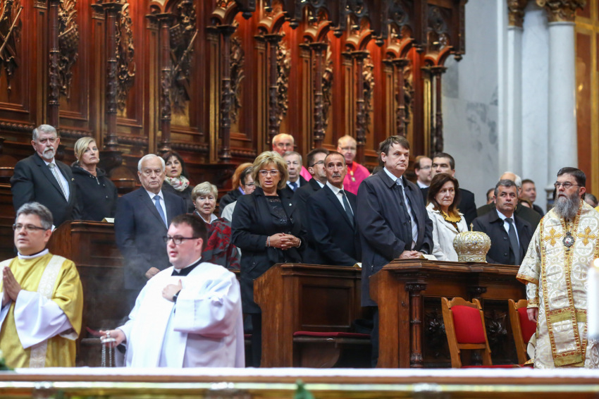 A szentmisén jelen volt Kásler Miklós, az Emberi Erőforrások Minisztériumának minisztere; David B. Cornstein amerikai nagykövet; Boross Péter volt miniszterelnök; Lenkovics Barnabás, az Alkotmánybíróság korábbi elnöke; Lomnici Zoltán, a Legfelsőbb Bíróság korábbi elnöke; részt vettek a testvéregyházak képviselői, a kormány, a politikai és a társadalmi élet számos képviselője, volt egyházügyi államtitkárok, a diplomáciai testület tagjai, politikusfeleségek, köztük Mádl Dalma és Antall Józsefné, valamint a kulturális élet képviselői, lovagrendek tagjai.