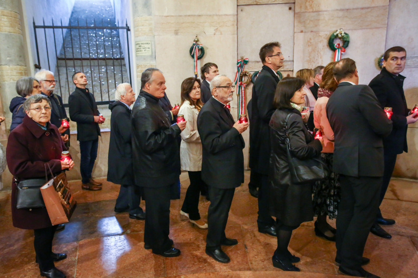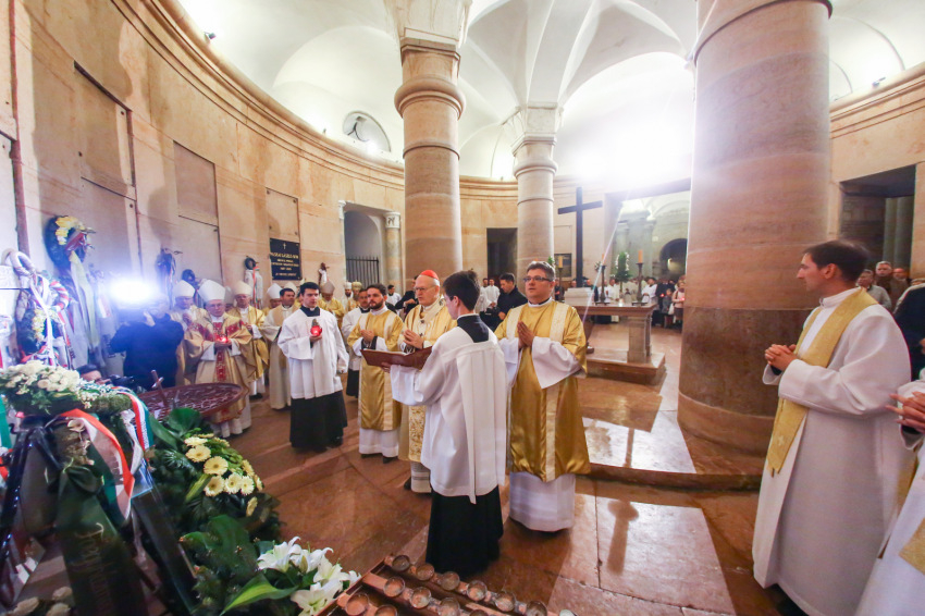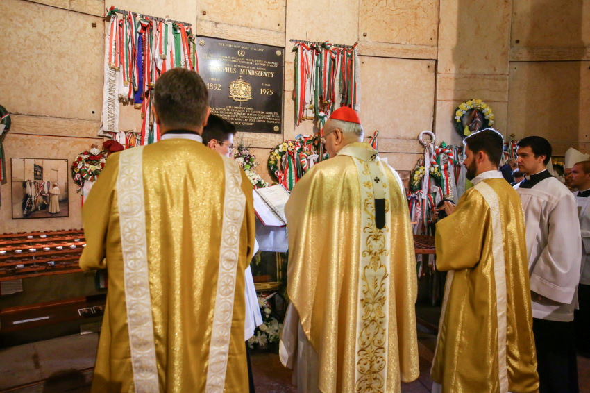 A liturgiát követően a püspökök, a jelen lévő papság, az állam és közélet, valamint a lovagrendek képviselői megkoszorúzták Mindszenty József sírját a bazilika altemplomában.