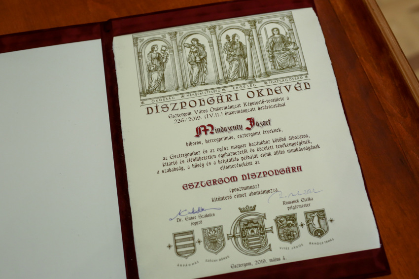 A szertartás után a Szent Adalbert Központban tartott fogadáson Romanek Etelka, Esztergom város polgármestere posztumusz díszpolgári címet adott át Mindszety József bíborosnak. Az ezt tanúsító oklevelet Erdő Péter bíboros vett át, és azt mondta, örök emlékezetül elhelyezi azt a prímási levéltárban.