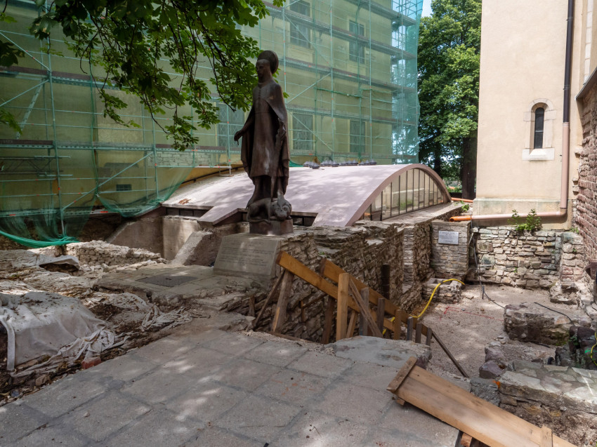 A Szent György keresztelő kápolnát az '50-es években fedezték fel, ettől kezdve indultak el itt a feltárások. Mivel műtárgyként, és nem szakrális területként kezelték, ezért az állagmegóvást nem megfelelően oldották meg. A vasbeton tetőzet miatt kedvezőtlen műszaki megoldást alkalmaztak, a víz visszafolyt a romok közelébe. A most folyó kutatás során a rétegek azonosítása megtörtént. Azt szeretnék, hogy a jövőben a kápolnát liturgikus célokra is lehessen használni.