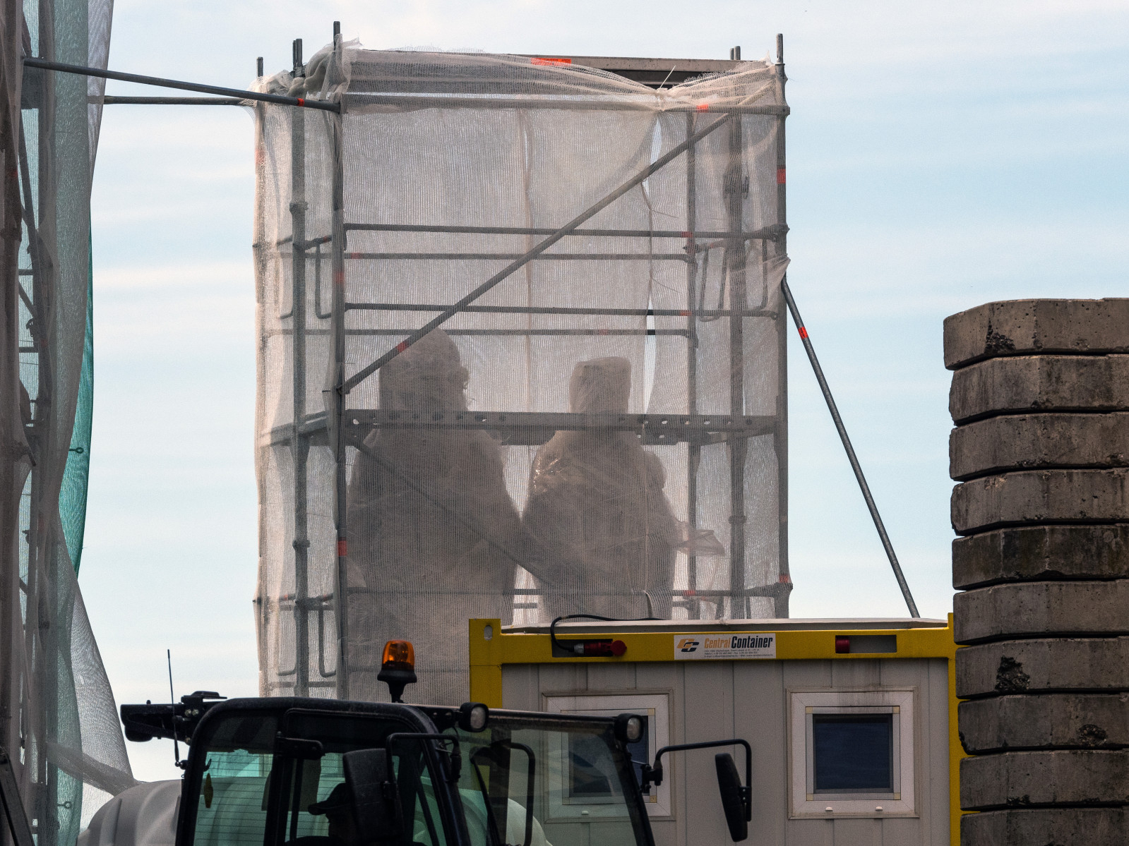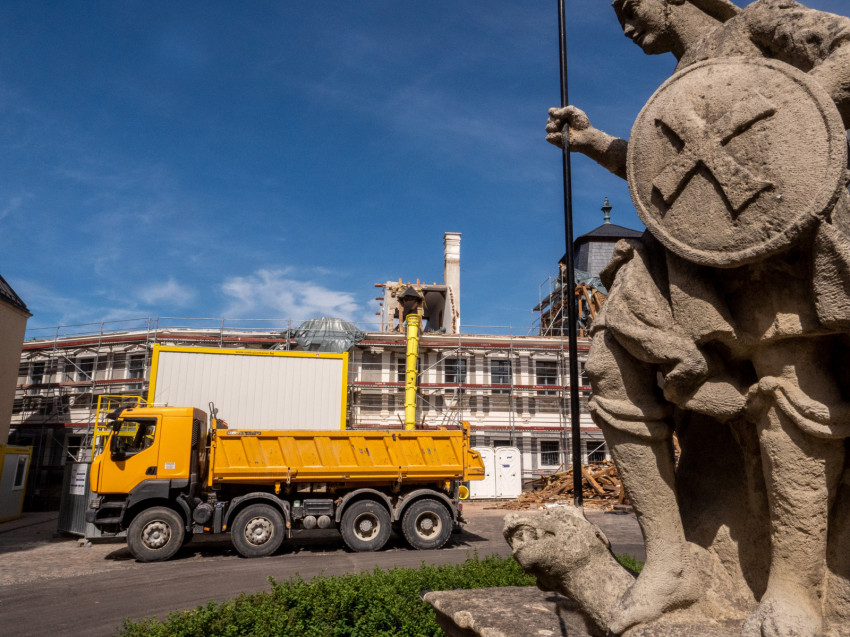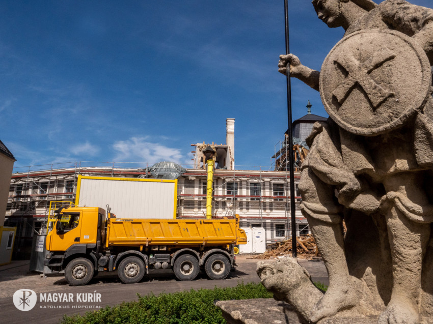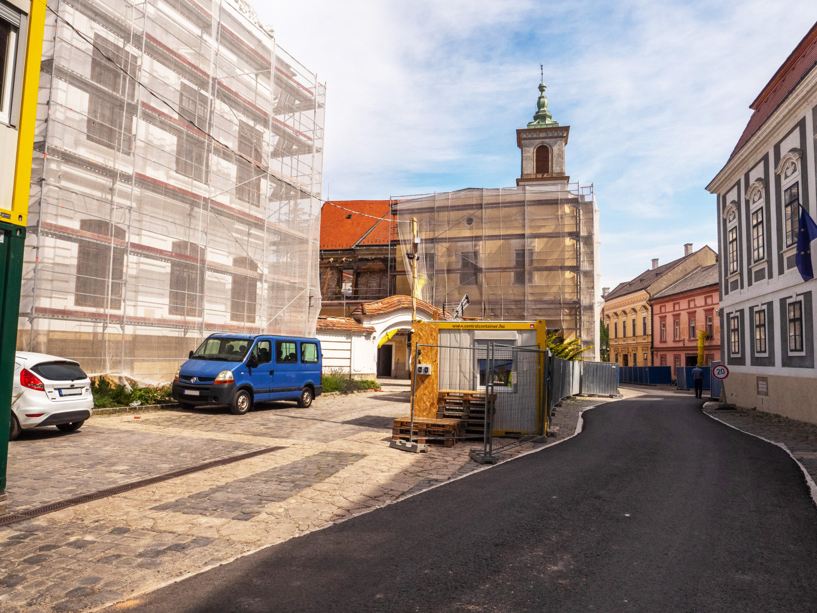 A közút tehermentesítése és az Óváros tér és közvetlen környezetének zavartalan működése miatt a Várhegy keleti oldalán, az Úrkút utca felőli Sportpályán egy óriás térállványrendszert építettek fel. A Püspöki alkalmazottak háza, a Nagypréposti palota és a Nagyszeminárium tetőszerkezetét már elbontották, ezzel párhuzamosan pedig megkezdődtek a belső építési, rekonstrukciós munkák. Festőrestaurátorok, kőrestaurátorok és farestaurátorok dolgoznak már a helyszínen – mondta el a szakember.