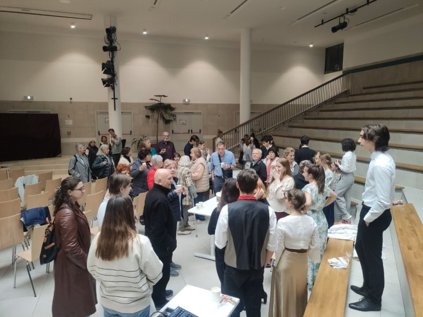 Az előadás utáni agapén vidám beszélgetés alakult ki. Az idősebbek bátran kérdeztek a próbákról, a fiatalok az előadásról meséltek, és szó esett az iskola történetéről is. Jólesett mindenkinek, hogy figyelmet kapott, és figyelmet fordíthatott a másikra is – mondta el Salaminné Kis Krisztina.