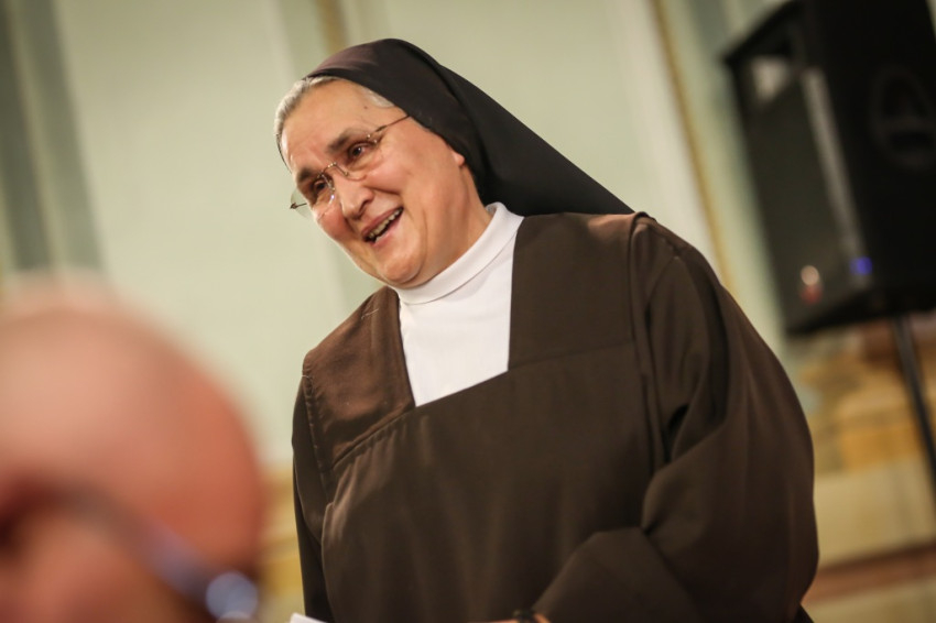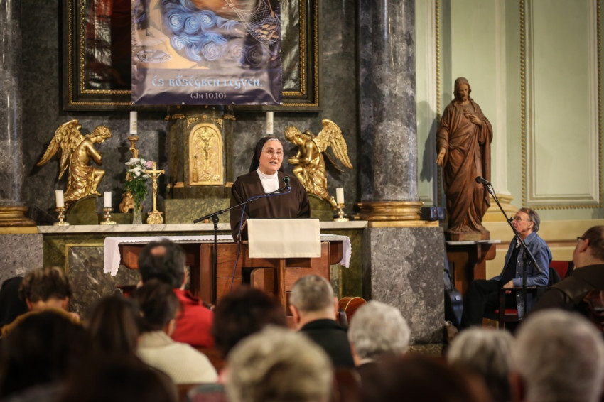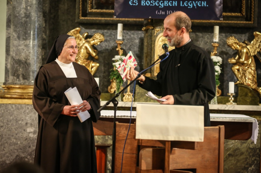 Jeges Mirjam feladata az volt, hogy az imáról beszéljen. A kontemplatív életet élő szerzetes azt fogalmazta meg, számukra az ima létmód, az Isten felé fordulás, a dolgok, a világ Istenen keresztül történő értelmezésének megvalósulása, melyben feltárul minden dolog helye, szépsége, a nagy összefüggések.