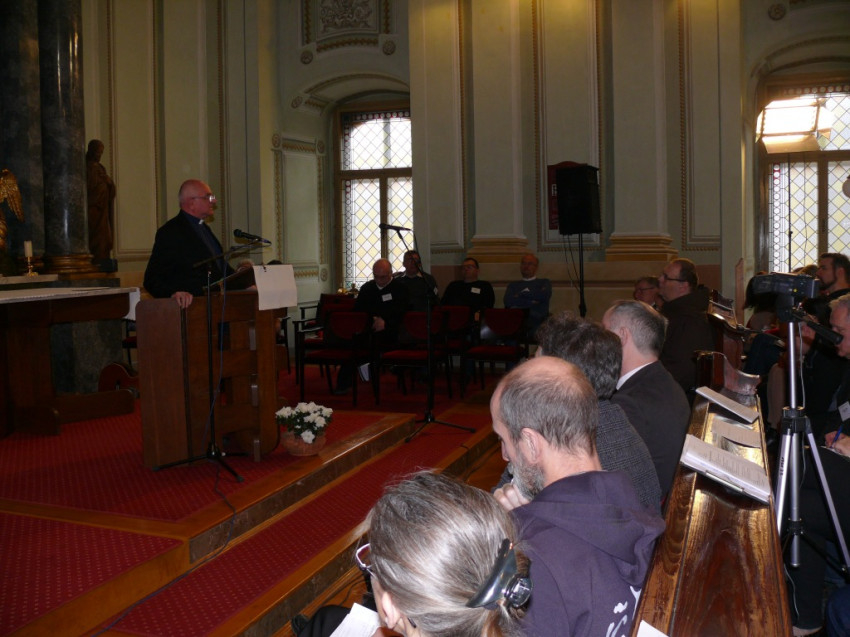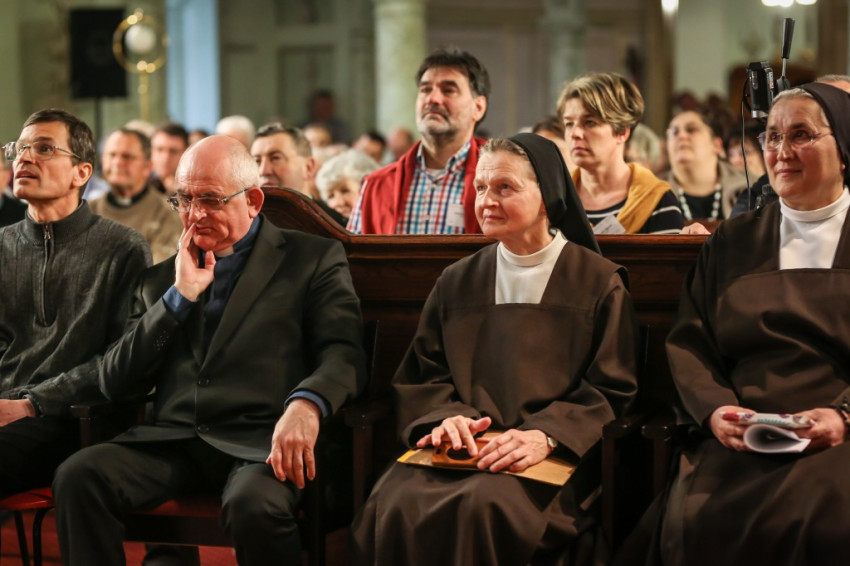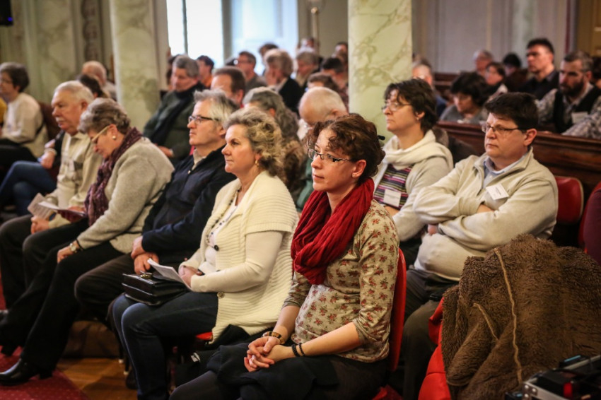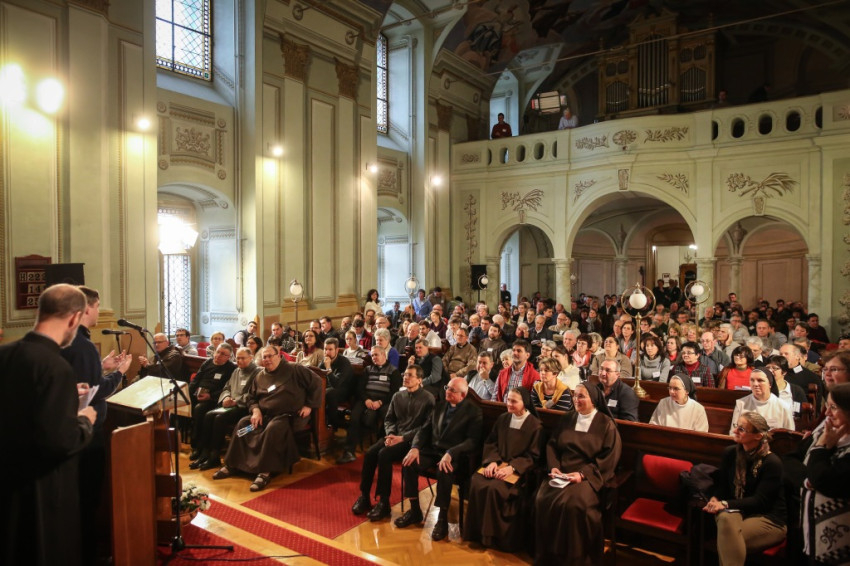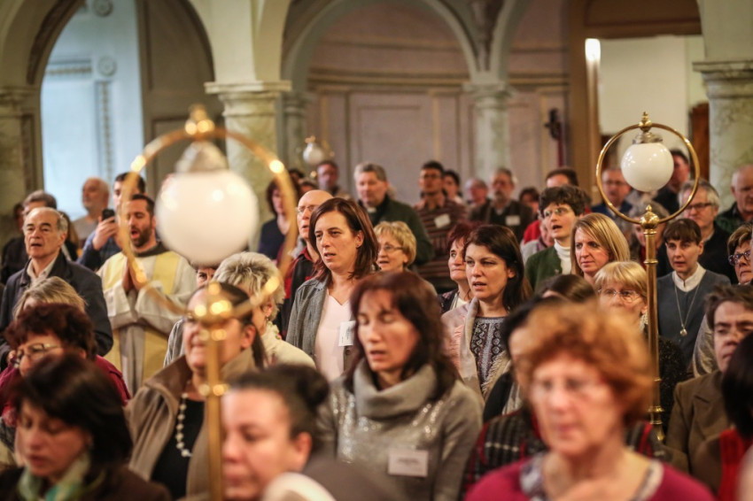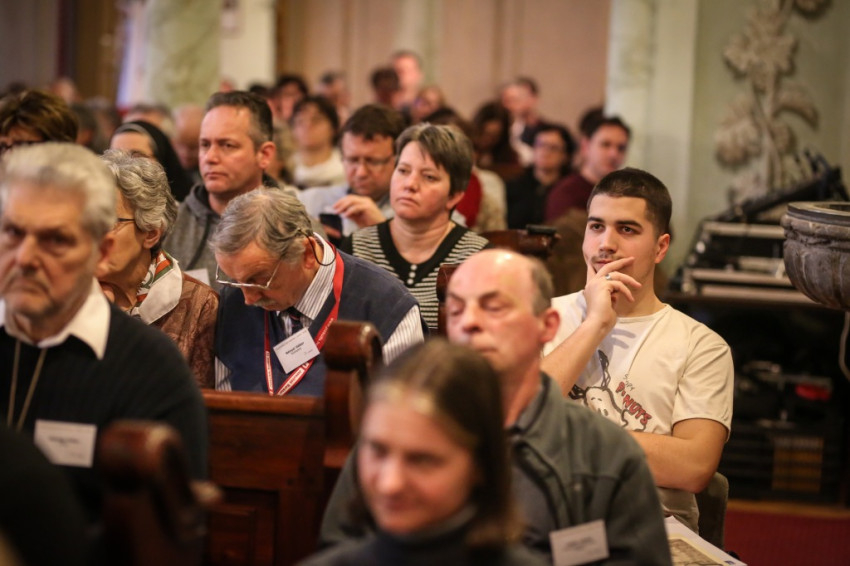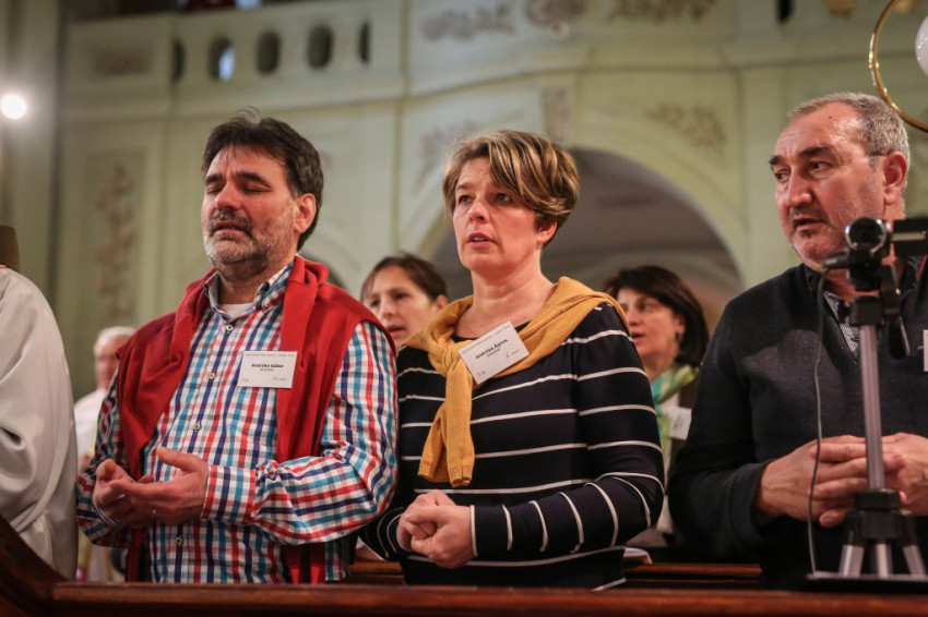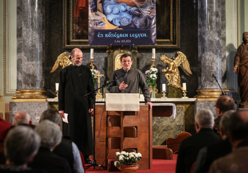 Varga László Az Eucharisztia mint küldetésünk forrása címmel tartott délelőtti előadása sokkal inkább elmélkedés volt, ami vezetni kívánt, eljuttatni arra, hogy vállaljuk Krisztussal az utat. Bízni, ráhagyatkozni, megtöretni és szétosztatni – ezt az ívet követték a püspök gondolatai.