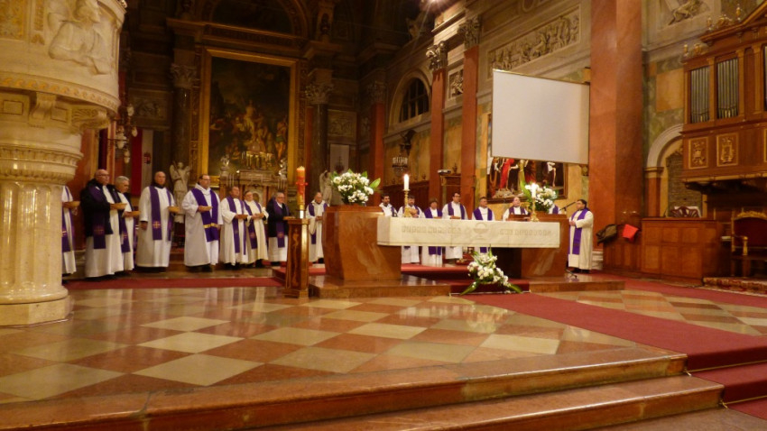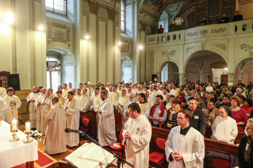 A találkozó szentmisével folytatódott, melynek főcelebránsa Varga László volt. A kaposvári megyéspüspök, visszacsatolva előadásához, homíliájában is a hitből, a krisztusi életből fakadó tettek és az evangelizáció feladatáról beszélt. Azt fejtette ki, hogy az evangelizáció elhanyagolását előszeretettel fogjuk külső akadályokra, holott annak akadályai belülről fakadnak. „Rossz ízű a kereszténységünk, krízisben van a hitünk, el vagyunk foglalva Egyházunk »hullafoltjaival«. Így ki akarna hozzánk tartozni?” Bűnbánatra, megtérésre biztatott: el kell indulnunk!