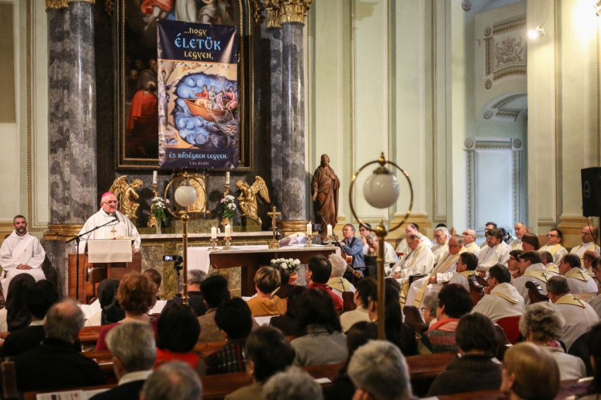 Hol kapcsolódik életünk a szentmisében ünnepelt Eucharisztiához, itt és most meghozzuk-e hétköznapjainkban mellette a döntést? A szentmise azt szolgálja, hogy Krisztus élete kiformálódjon bennünk – fogalmazott a főpásztor. – Az emberben azonban a félelem megakadályozza, hogy rábízza magát Istenre.
