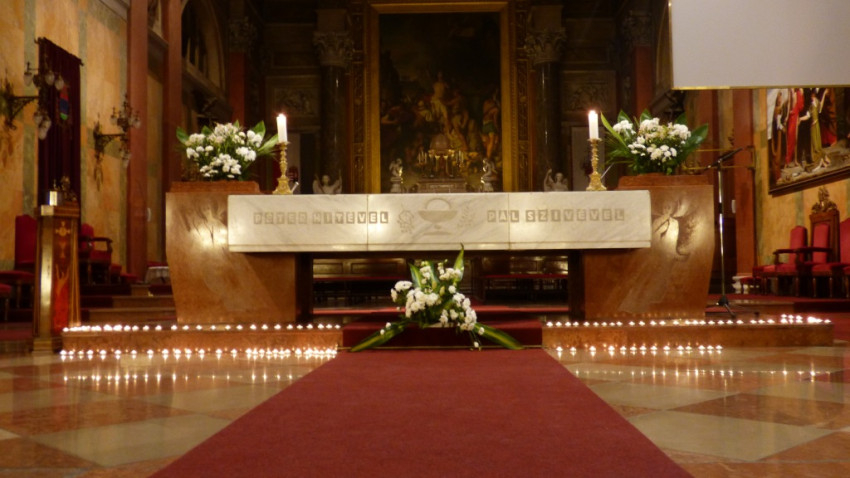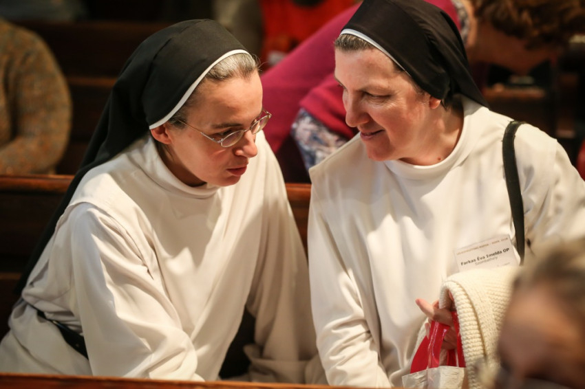 Nehéz ez az út – utalt a küzdelmekre. – Könnyebb lenne, ha Isten akkor jönne, amikor hívjuk, és azt tenné, amire kérjük. Így jól ellennénk. De Jézus bennünk él. Elvisel minket, felvállal, bármilyen helyzetben vagyunk. Ha elfogadjuk ezt az ajándékot, végtelen távlat nyílik előttünk, és felismerjük, ezt azért kaptuk, hogy továbbadjuk, hogy szolgáljunk. Erre az útra lép rá az, aki megérti, hogy Krisztus bennünk él. Ez nem megy egyszerre, nem tiszta a szívünk, ragaszkodunk előítéleteinkhez, ítéleteinkhez, tárgyainkhoz, kapcsolatainkhoz, bűneinkhez. És ahogy az Eucharisztiában megtörjük a kenyeret, hogy szétoszthatóvá váljon, úgy kell nekünk is megtöretnünk, hogy szétoszthatóvá válnunk.