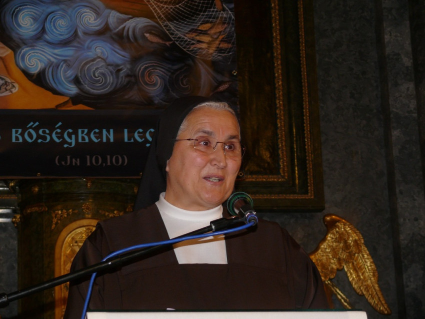 Az imában való élet ahhoz hasonlatos, ahogy Ádám és Éva élt Isten szemlélésében a Paradicsomban. Ekkor élte az ember az igazi életét, ezt rontotta meg a bűn, majd Krisztus megtestesülésével kapjuk vissza igazi emberségünket. Ő istenhiányos, mély sebzettségünk begyógyítója. Életfeladatul azt kaptuk, hogy eljussunk Krisztus hasonlatosságára – idézett Mirjam nővér a Rómaiakhoz írt levélből. A kármel nagy szentjei, Avila Szent Terézt és Keresztes Szent Jánost követve mutatta be annak útját, ahogyan az ember ki tud törni a hamis én fogságából, ahogyan egyre lendületesebben lesz képes menni a cél felé.