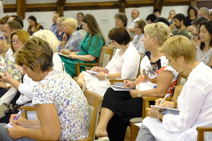 Nem csupán az elektronikus módszerek megismerésében mélyedhettek el a résztvevők, egy másik műhelyben Faragó Janka, a Híd-Tan blog alkotója osztotta meg a hittanórákon felhasználható kreatív kézműves ötleteit a katekétákkal, akik maguk is színes papírt, ragasztót és ollót ragadtak, míg a negyedik műhelyfoglalkozáson Gáspárné Kiss Barbara, a Pécsi Tudományegyetem óraadója tartott érzékenyítő foglalkozást a nehézséggel küzdő gyerekeket oktató hittanárok számára.