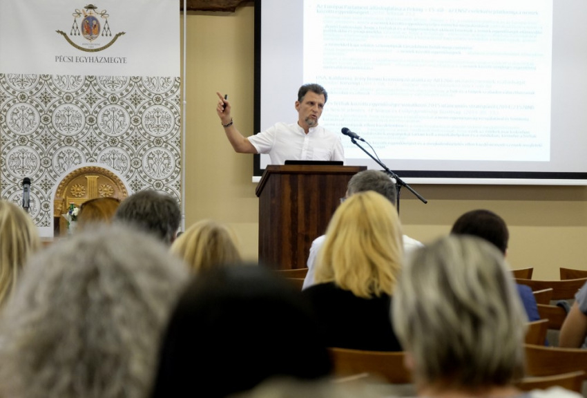 Nagy Péter egyházmegyei közoktatási munkatárs előadásában azokat a rejtett veszélyeket mutatta be, amelyek felismerése, megelőzése, kiküszöbölése jelentősen szolgálhatja az értékmentő, értékmegőrző és értékteremtő oktatás–nevelés ügyét.
