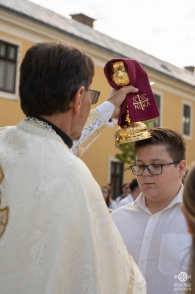 A Szent Liturgiát Szocska A. Ábel nyíregyházi megyéspüspök jelenlétében Lipcsák Tamás vezette, koncelebrált Orosz István Árpád kállósemjéni esperes-parókus; Kiss Zsolt nyírbátori esperes-parókus; Jaczkó Sándor balkányi és Szokira János bökönyi parókus; Mosolygó Péter, a kegyhely igazgatója; valamint Grunda Dávid, az iskola lelki vezetője.