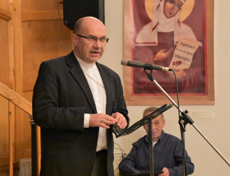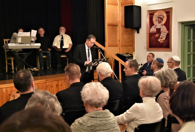 A váci Regőczi-kápolna kórusának bevezető énekét követően Marton Zsolt váci megyéspüspök köszöntötte az egyházi vezetőket, a híveket, és emlékeztetett arra, hogy a zsidókra mint idősebb testvérekre tekinthetünk: „Az egész emberiség egy hajóban utazik, amelyben meg kell tanulnunk elfogadni és szeretni egymást, és ebben a szeretetegységben tudunk együtt lenni.”