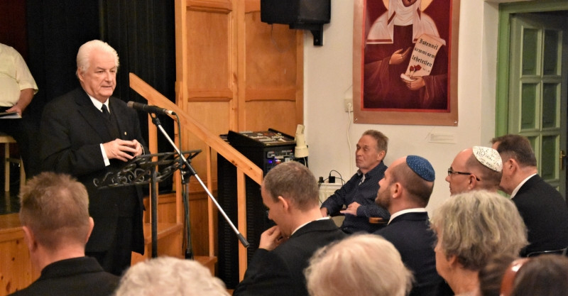 Róna Tamás főrabbi a zsidó hagyományról elmélkedett, amely annak megértését szolgálja, hogyan lehet a rabláncainktól megszabadulni. Hangsúlyozta, hogy érdemes a másik emberért imádkozni, és ha képesek vagyunk meglátni magunkat a másikban, az Örökkévaló hívó szavát tanítsuk közösen, és emeljük fel együtt szavunkat az elveszettekért. Hittel éljünk törvényeinkkel, és tiszteljük a másik törvényét.