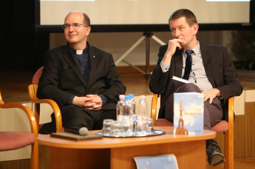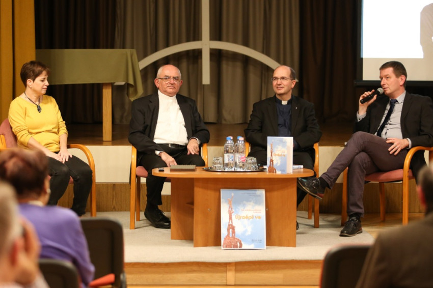A megyéspüspök előadása után beszélgetést vezetett Ház Gergely, aki Varga László mellett Benkőné Berta Zsófiát, a kötet egyik fordítóját és Nyéky Kálmán plébánost, a magyar kiadás szerkesztőjét kérdezte. Az első kérdés az volt, kiknek ajánlható ez a könyv? Csak a plébánosoknak? Benkőné Berta Zsófia bevallotta, fordítás közben úgy érezte, személyesen neki mint hívőnek szól a könyv, és mélyen megérintette. Nehéz volt szembesülnie azzal, hogy sokféle, a könyvben fogyasztói magatartásnak nevezett hozzáállásban viszontlátta saját magát. Elhatározta, akkor is lefordítja a könyvet Koszoru Péterrel, ha az végül nem is fog megjelenni. (Ez kezdetben még bizonytalan volt.) Már csak a sok humor miatt is megéri elolvasni! – tette hozzá Benkőné Berta Zsófia.