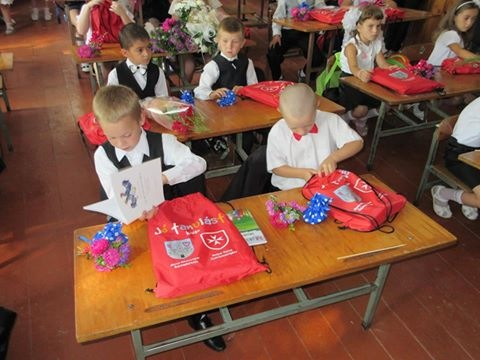 Kárpátalján 99 olyan iskola működik, ahová magyar anyanyelvű gyerekek járnak, ezekben az intézményekben most szeptemberben 2 ezer gyerek kezdi meg tanulmányait. Ők valamennyien ajándékba kapták az első osztályban szükséges tanszereket. Az adományt jelképesen szeptember 1-jén délelőtt az aknaszlatinai magyar általános iskola tanévnyitó ünnepségén adta át Győri-Dani Lajos, a Magyar Máltai Szeretetszolgálat ügyvezető alelnöke és Bús Balázs, Óbuda Békásmegyer polgármestere.