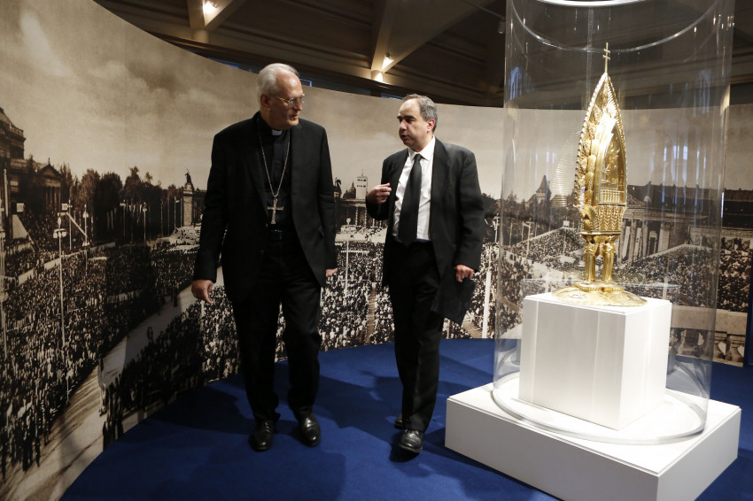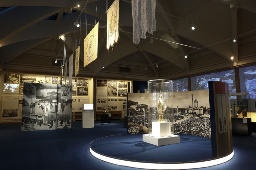 Az eucharisztikus kongresszusok története a 19. század második felében kezdődött. Egy olyan korszakban, amelyben a szabadelvűség nyomán megerősödő ateista eszmék a politikai kormányzásban is éreztették hatásukat. E szellemi áramlatok Franciaország társadalmi életét különösen átjárták, ezért érthető, hogy az eucharisztikus kongresszusok szervezése ebből az országból indult útjára – olvashatjuk a falon lévő szövegek között a kiállításon.
