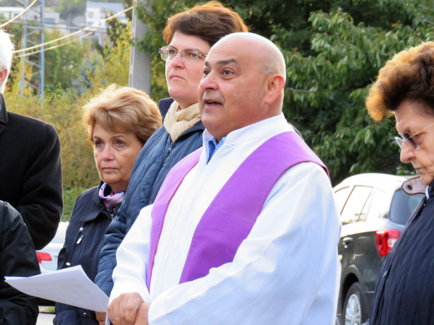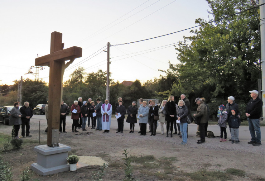 A jelenlévők közösen imádkoztak, majd a plébános megáldotta a keresztet, valamint a Tó utca és Tisza utca sarkán összegyűlt ünneplő híveket.