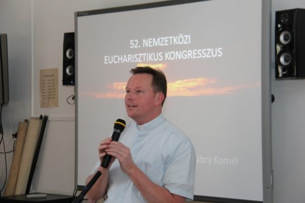 Az előadó részletesen beszélt a kongresszus előkészítéséről, célkitűzéseiről, tervezett helyszíneiről, valamint arról is, hogy mi az egyes plébániák, sőt az egyes emberek feladata a nemzetközi rendezvénnyel kapcsolatban. Képeket villantott fel az 1938-as világkongresszusról, melyen még természetesen sokkal kevésbé fejlett technika állt rendelkezésre, mint napjainkban. Az érdeklődők láthatták a hatalmas tömegeket a tavalyi, Cebuban megrendezett világeseményről, a döbbenetes számú elsőáldozóról, körmenetben részt vevő százezrekről. Hihetetlen lehetőségünk lesz három év múlva, hogy bemutassuk hazánk hitéletét, hogy sok keresőt vonzzunk magunkhoz, ha hitelesen képviseljük vallásunkat, és megfelelően előkészítjük ezt a rendkívüli rendezvényt – mondta el Fábry Kornél, aki felhívta a figyelmet arra is, hol és hogyan vehetünk mi is részt az előkészületekben.