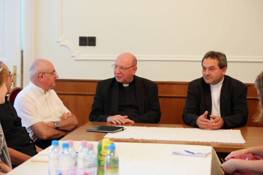 Varga László többek között az egyházmegye szervezeti felépítéséről és az ezekben felmerülő nehézségekről, célokról kérdezett, és kérdéseire főként Palánki Ferenc megyéspüspök válaszolt.