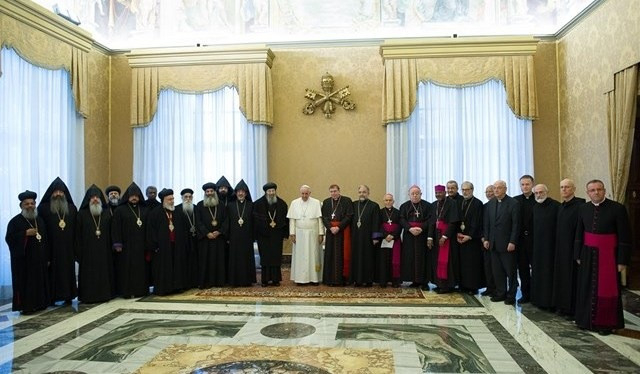 Testvéri találkozóra került sor a katolikus és a keleti ortodox teológusok között a pápa jelenlétében, egy olyan időszakban, amikor a Közel-Keletről folyamatosan drámai hírek érkeznek. „Ezért most különösen fontos, hogy osztozzunk a szomorúságban és fájdalomban a közel-keleti történések miatt, főként az iraki és a szíriai helyzet láttán” – hangsúlyozta a Szentatya.